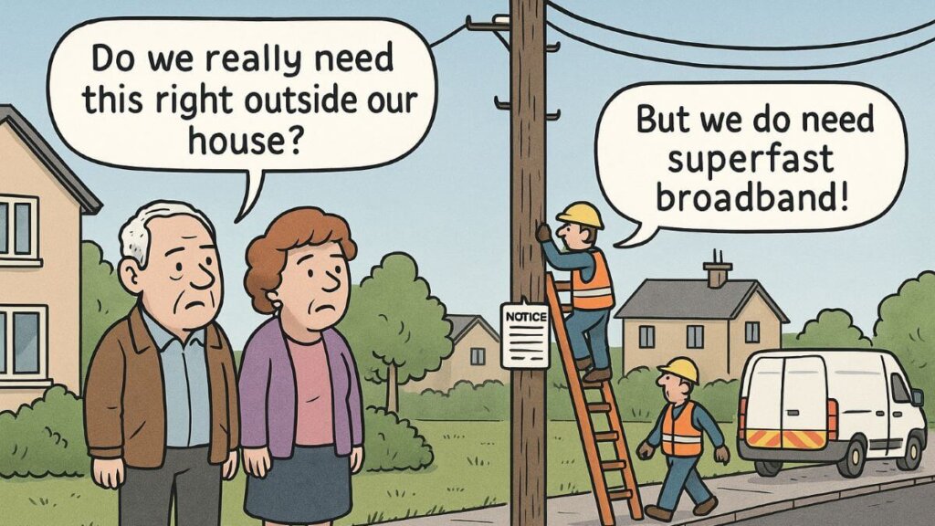 A few of you have contacted me about the new broadband poles that have gone up in parts of Grantham. This post sets out what is happening, why it is happening and what powers the council actually has. I want this to be clear and jargon-free so you know what is, and isn’t, in local control.